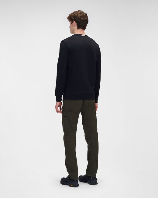 Esta sudadera luce un diseño de cuello redondo clásico, rematado con un discreto bolsillo en la manga que incorpora el detalle de la lente distintiva de C.P. Company. La prenda está elaborada en nuestro tejido de felpa con textura en diagonal, una alternativa de algodón de rizo de peso medio que combina gran comodidad con un carácter denso y resistente.