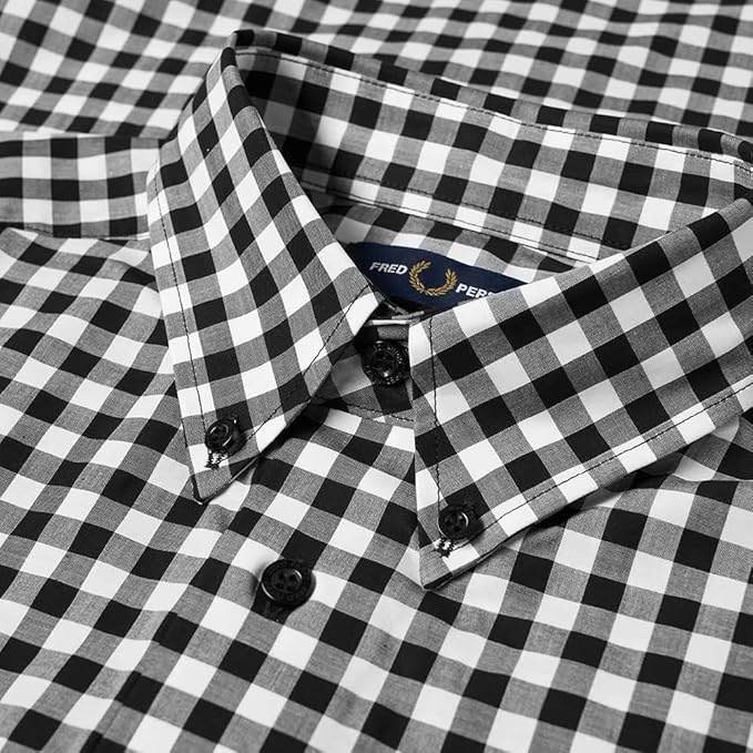 Una camisa Fred Perry con botones, en elegante popelina de algodón, tejida con un diseño clásico de tartán a cuadros escoceses y confeccionada con los inconfundibles detalles de las camisas formales.