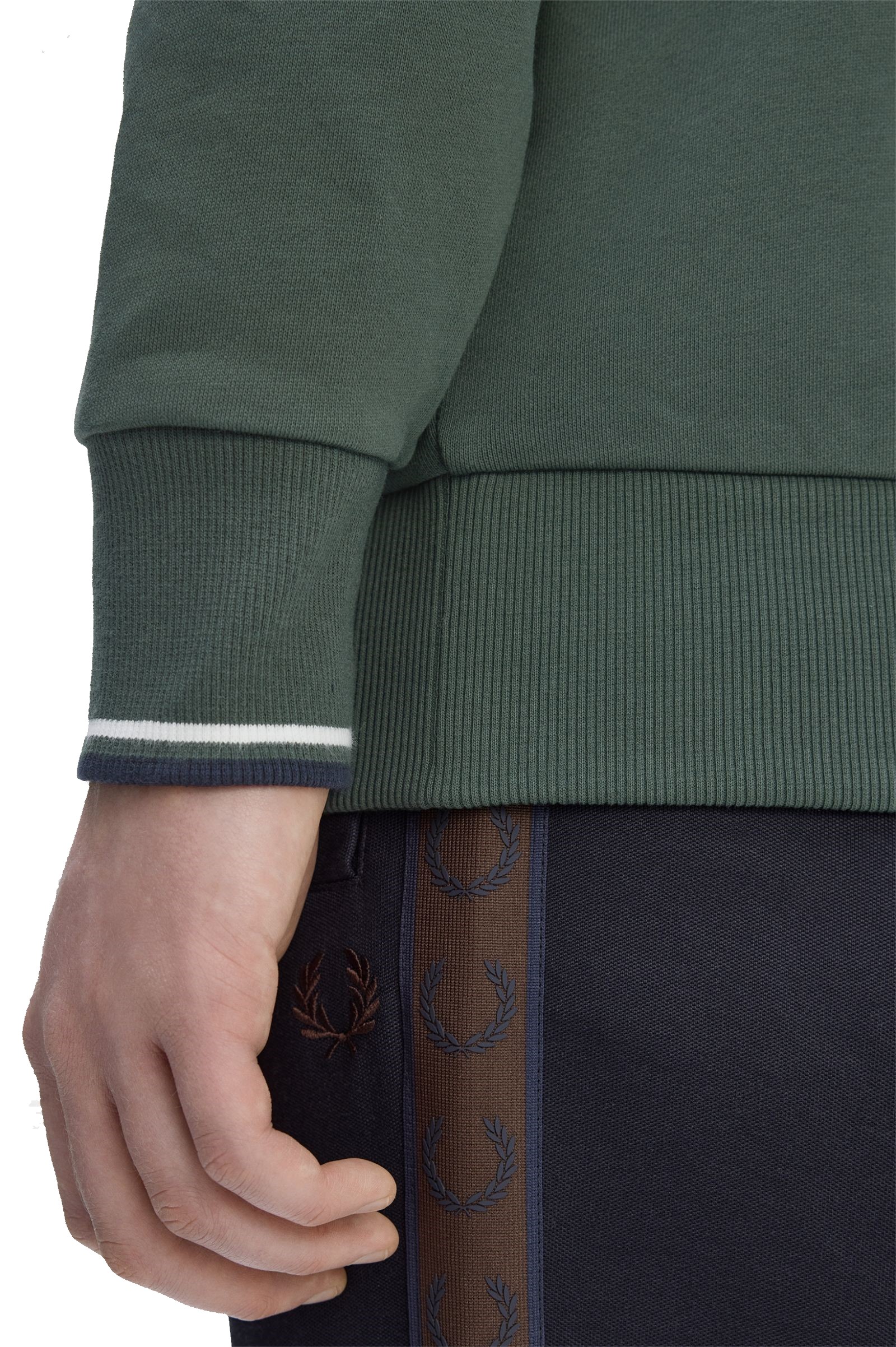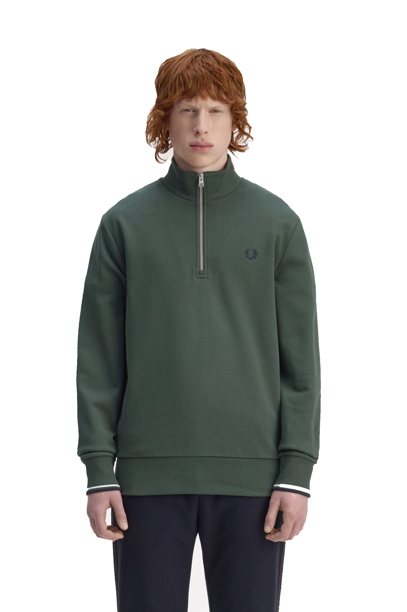 Nuestro modelo de algodón con media cremallera y el ribete con dos franjas en los puños. Nuestra sudadera con media cremallera, un modelo a medio camino entre la ropa deportiva y la moda urbana, es una prenda básica y versátil, caracterizada por su sencillo diseño minimalista. Este modelo incluye, además, nuestra inconfundible corona de laurel bordada, unos puños con el ribete de dos franjas y un clásico y elegante cuello de chimenea.