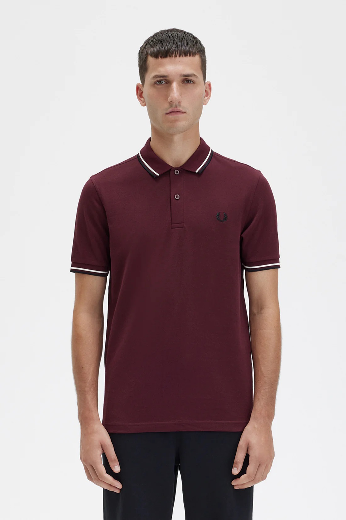 Fred Perry Slim Fit Twin Tipped Polo Oxblood / Crudo / Black
